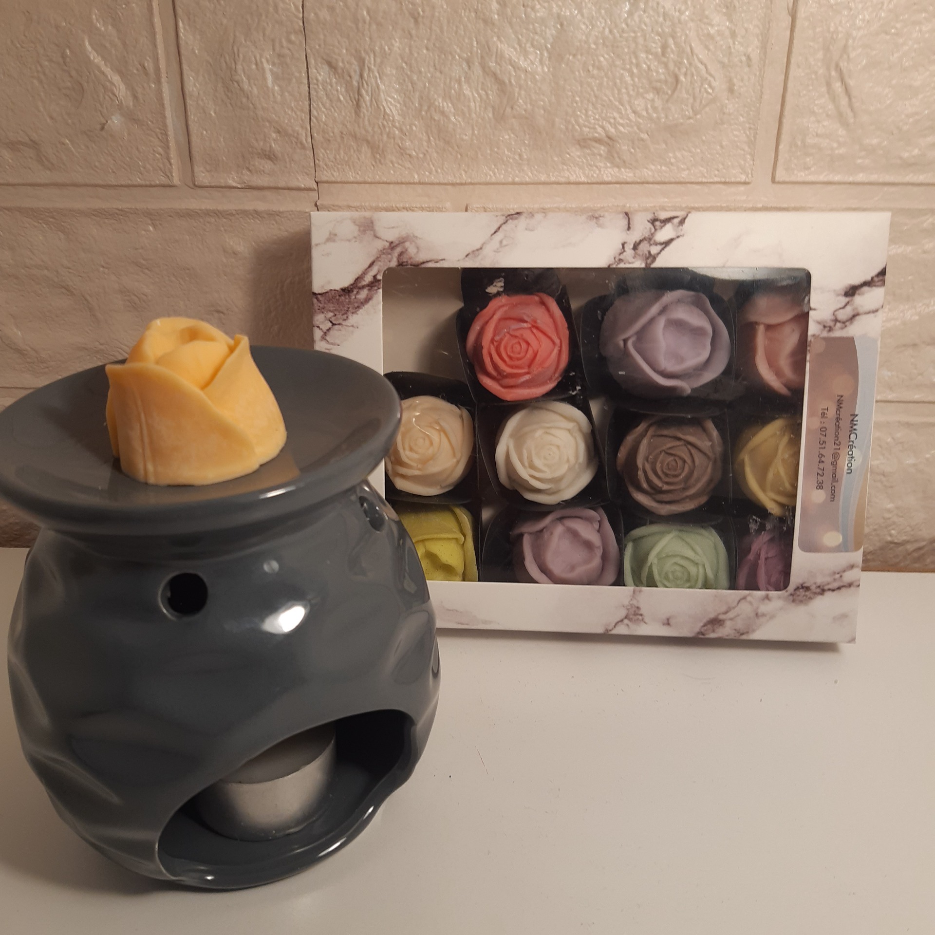 Ma boite est composée de 12 fondants aux parfums incroyables ! Le fondant est une rose de cire de soja parfumée que l'on dépose sur la coupelle d'un brûle parfum. Il est parfait à glisser dans vos box cadeaux. Ces roses parfument avec délicatesse un intérieur et laisse une atmosphère fraiche. Chaque rose à un parfum différent et les parfums sont aléatoire.